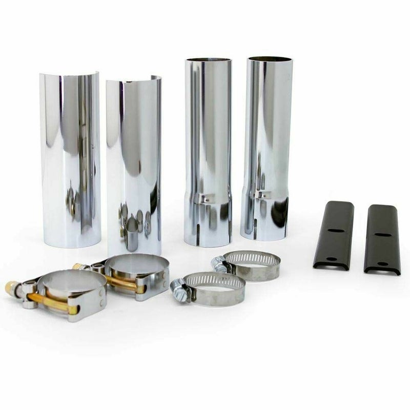 エクステンドサドルバッグおよび、エクステンドリアフェンダーを装着する際に、マフラー後端部が隠れてしまわないように、マフラーを後ろにずらす必要があります。 その際、このキットでエキゾーストパイプを延長することで解決します。 キット内容: エキゾースト延長パイプ x 2 ヒートシールド x 2 マフラーサポートステー(延長用) x 2 エキゾーストパイプ用クランプ x 2 ヒートシールド用クランプ x 2 エキゾーストは最大6インチ(約15cm)延長可能です。 ※実際に取り付ける際にマフラーと位置合わせを行い、必要な長さにカットします。(長さによりステー等の加工が必要になる場合があります。)