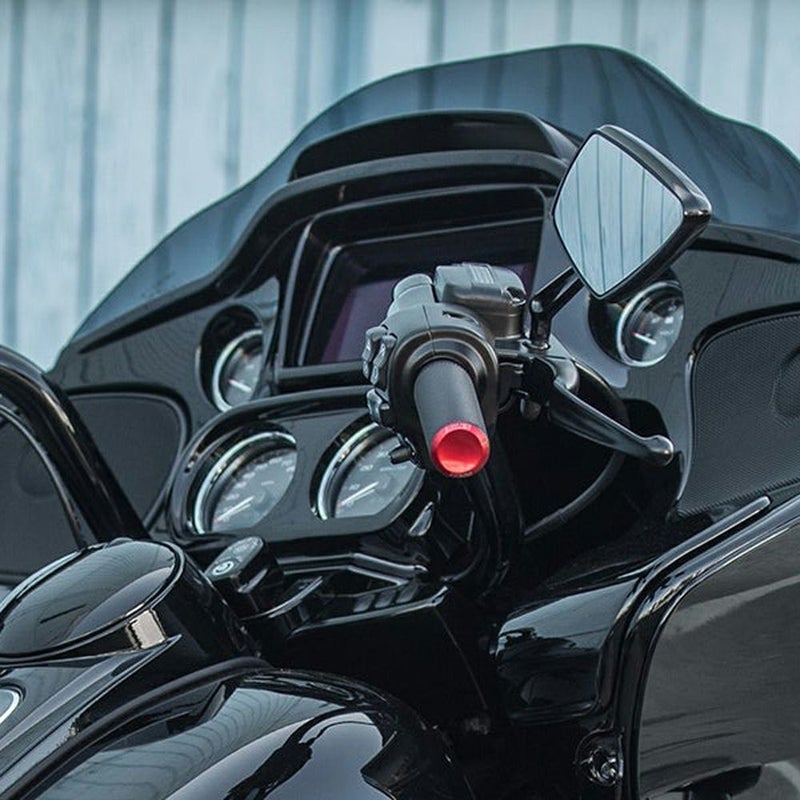 2023以降 CVOロードグライド、CVOストリートグライド、2024以降 ロードグライド、ストリートグライド用 ハンドグリップセットです。 <特長> ●滑り止めのナール模様付きラバー。シンプルでありながらカスタム感溢れるルックス ●削り出しのアルミ製エンドキャップ。レッドカラーのアルマイト仕上げ。ARLEN NESS(アレンネス)のロゴ刻印入り ●新型電子スロットル機構に対応 ●左右ペア ※車両装着写真は他車種用のものです。(参考写真)