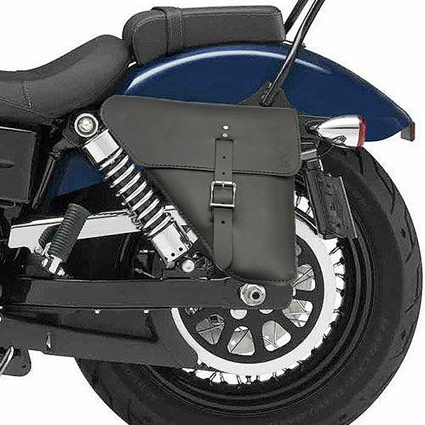 本革製1ベルトスタイルのサドルバッグ。 リアサスペンションの横にピッタリフィットする形状です。 標準装備のリアウインカーを避ける形状なのでウインカーの移設等の必要がありません。 BAD&G CUSTOMはアメリカでレザー製品のカスタムを主に行うショップです。 受注生産なので、バックルカラーやステッチカラー等の選択が出来、自分好みに仕上げる事が可能。 また、オプションのクイックリリースバックルを追加する事で、見た目はそのままに開閉が楽になります。 バックルカラーは、クローム、ブラス(真鍮)、ブラックから選択可能。 ステッチカラーは写真の14色より選択可能。