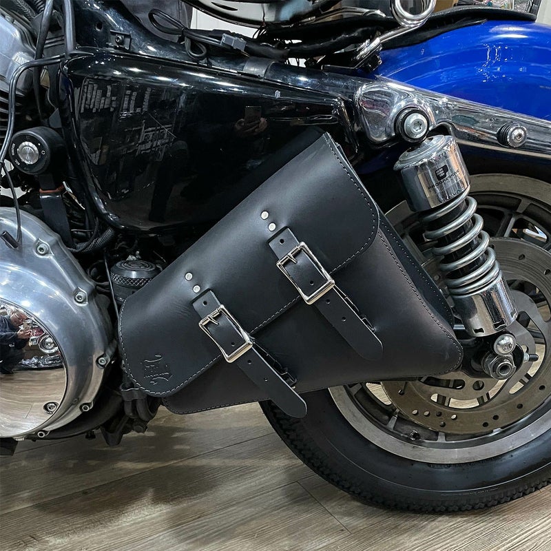 スポーツスター 本革レフト・ソロスイングアームバッグ クイックリリースバックル ブラックステッチ BAD&G CUSTOM