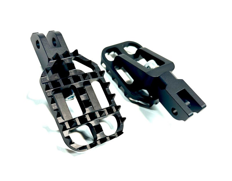 食いつきの良いMXスタイルのライダーフットペグ。 独特の形状で抜群のグリップ力を誇ります。 ペグの角度は360度調整可能なので、お好みの位置に設定できます。 ブラックアルマイト処理。 左右セット。 ※写真2~4枚目はブロンズ・シルバーの商品が含まれております。 ※イメージ写真となります。