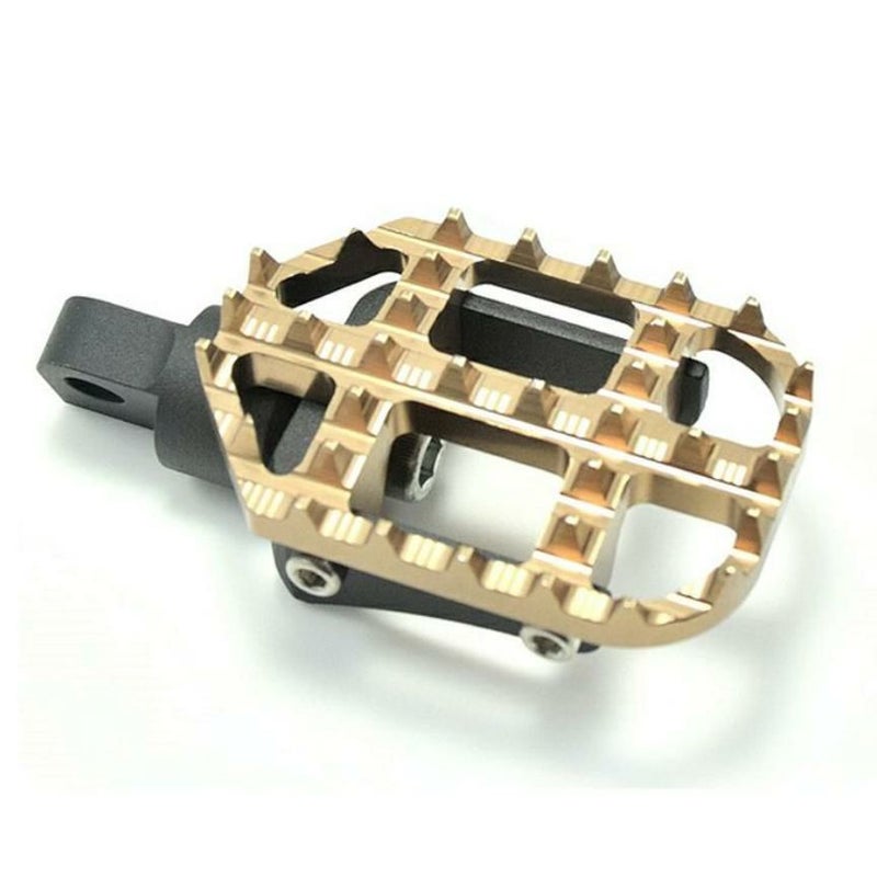 食いつきの良いMXスタイルのライダーフットペグ。 独特の形状で抜群のグリップ力を誇ります。 ペグの角度は360度調整可能なので、お好みの位置に設定できます。 ブロンズアルマイト処理。 左右セット。 ※写真2~4枚目はブラック・シルバーの商品が含まれております。 ※イメージ写真となります。