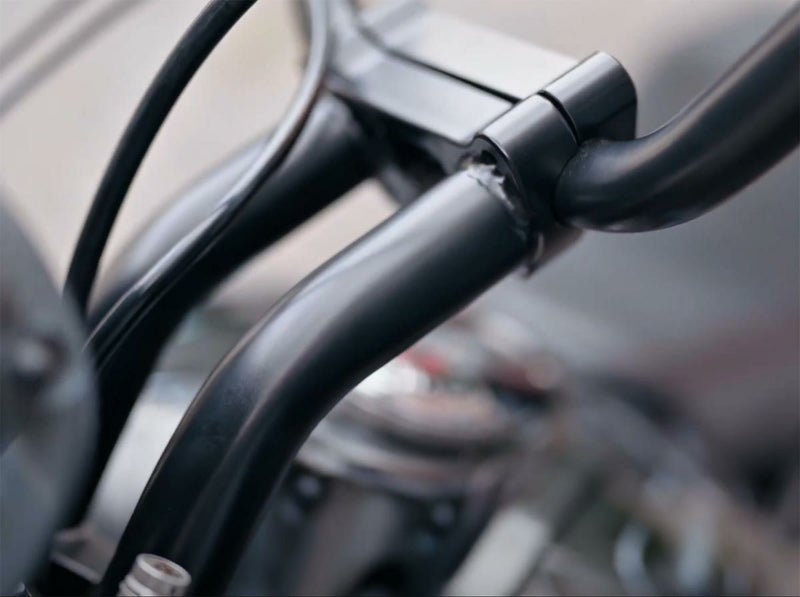 ワンピースライザー。 左右が独立したライザーの場合、激しいライディングの際などにハンドルのよじれを感じることがありますが、このライザーは左右が繋がっている一体式なので、よじれることなくハードなライディングにも耐えることができます。 配線中通し用の穴が空いているので、配線を中通しすることでハンドル周りをすっきりとした印象にできます。 ライザーボルトは多くのノーマルライザーに使用されている1/2 x 13ピッチのものを使用します。(ライザーボルトは付属しません) アッパークランプは付属しません。 ※アッパークランプは写真のような逆ハの字型のものに適合します。 ※トリプルツリーとライザーが一体型のモデルは不可。 ※写真はサンプルになります。