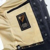 コットン素材のバイクジャケット。 ●ファッション性も考慮してデザインされた伸縮性のあるコットン製バイクジャケット。 ●内側にアラミド素材を採用。 ※アラミド繊維は、衣料品に使用されている化学繊維に比べ、耐熱性、強度、難燃性、耐薬品性に優れている素材です。また、衝撃吸収性にも優れておりバイクジャケットに適しています。 ●外側に4つ、内側に2つのポケットを装備。 ●袖口はスナップボタンを装備。 ●正面にはYKKダブルジッパーを採用。 ●肩に取り外し可能なプロテクターを装備。 ※サイズチャートは自身の体のサイズを実測してください。ジャケットのサイズを記載しているのではなく、各サイズにフィットする体のサイズを記載しています。