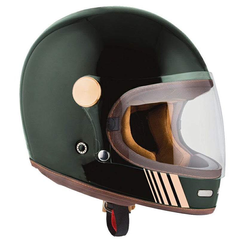 クラシックなデザインで快適性・安全性を兼ね備えたフルフェイス ヘルメットです。 ダブルリング留めでフィット感を向上しています。 インナーパッドは取り外し可能です。 ECE規格に適合しています。 日本製ヘルメットよりも1~2サイズ小さめです。 ※装飾品