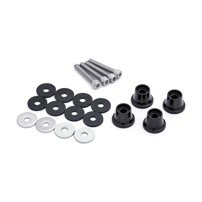ハーレー ツーリング、トライグライドウルトラのツアーパックキャリア(リッド上のラゲッジラック)の高さをかさ上げするためのアダプターキットです。 このキットで1/2インチ(約1.3cm)かさ上げでき、紐を掛け易くなり、掃除もし易くなります。 また、脚の部分の面積も広がるため、荷物の荷重を分散出来、安心感が高まります。 純正プレミアムツアーパックキャリア(53665-87)用 ※純正エアーウィング・ツアーパックラゲッジラック(53000063、79179-08)は不可 ※装着写真はクローム(C20400)のものです。(参考写真)