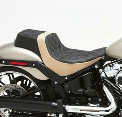 Wallシートの高いバックサポートと、Gamblerデザインのデュアルシートを融合したデザイン。 全体的に低く構えたシートスタイルを維持しながら、ライダーのシートバックは高く切り立っており、ライダーを完璧にサポートします。 コルビン独自のフォーム素材と、人間工学に基づいたシート形状によって、乗り手の体重を分散させます。 シートベースはコルビンのために独自に開発した、ハイブリッド素材製。フラットな形状を保持し、シートフォームの型崩れを防止するため、長時間乗っても体へかかる荷重が変化しません。 このシートベースと車体の接点はゴムダンパーで支えられ、塗装を傷つけません。 取付けは前側のベロ(金具)を差し込んで、後ろ側をシートスクリューでとめるだけです。 別売のシートスクリュー(ACST-20)もあります。 ※その他の色、素材もオーダー可能です。(詳細はお問い合わせください) ※2023以降 ブレイクアウトに装着すると、タンクコンソールとシートの間に隙間が出来ます