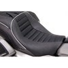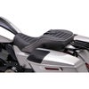 2023年以降 CVOロードグライド、CVOストリートグライドおよび2024以降 ロードグライド、ストリートグライド、CVOロードグライドST用 2UPシートです。 独特なタンク~サイドカバーにかけてのラインにマッチするようシェイプされています。 ライダーおよびパッセンジャーの腰を包み込む座面形状で長距離ツーリングで抜群のサポート力を発揮します。 コルビンオリジナルの高密度シートフォームと頑丈な専用シートベースで体重を常に適度に分散し、長時間の乗車でもお尻が痛くなりません。 ライダーの後ろに別売コルビン専用バックレスト(BR、02-SB 他)を装着すれば、背中・腰へのサポートをより高めることが出来ます。 純正デタッチャブルシーシーバー用の別売バックレストパッド(SR、HD-FLH-9-PAD-BLK 他)はパッセンジャーのサポートを向上し、シートとのデザインマッチも可能です。 ※掲載写真以外の色・柄も価格変更なしでオーダー出来ます。 (詳細はお問い合わせください) ※写真のバックレスト、トランクパッド、シートスクリューは別売です。 ※写真はヒート機能付きのもの(左サイドにスイッチのあるもの)を含みます(参考写真)