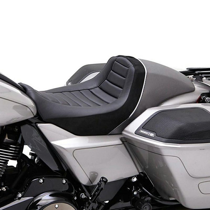 2023年以降 CVOロードグライド、CVOストリートグライドおよび2024以降 ロードグライド、ストリートグライド、CVOロードグライドST用 ソロシートです。 高いバックサポートと、ファストバックスタイルのテールが特徴の"ザ・ウォール"デザイン。 アグレッシブなライディングでもライダーの腰をしっかりとホールドします。 コルビンオリジナルの高密度シートフォームと頑丈な専用シートベースでライダーの体重を常に適度に分散し、長時間の乗車でもお尻が痛くなりません。 別売コルビン専用バックレスト(BR、02-SB 他)を装着すれば、背中・腰へのサポートをより高めることが出来ます。 ※掲載写真以外の色・柄も価格変更なしでオーダー出来ます。 (詳細はお問い合わせください) ※写真のバックレストは別売です。 ※写真はヒート機能付きのもの(左サイドにスイッチのあるもの)を含みます(参考写真)
