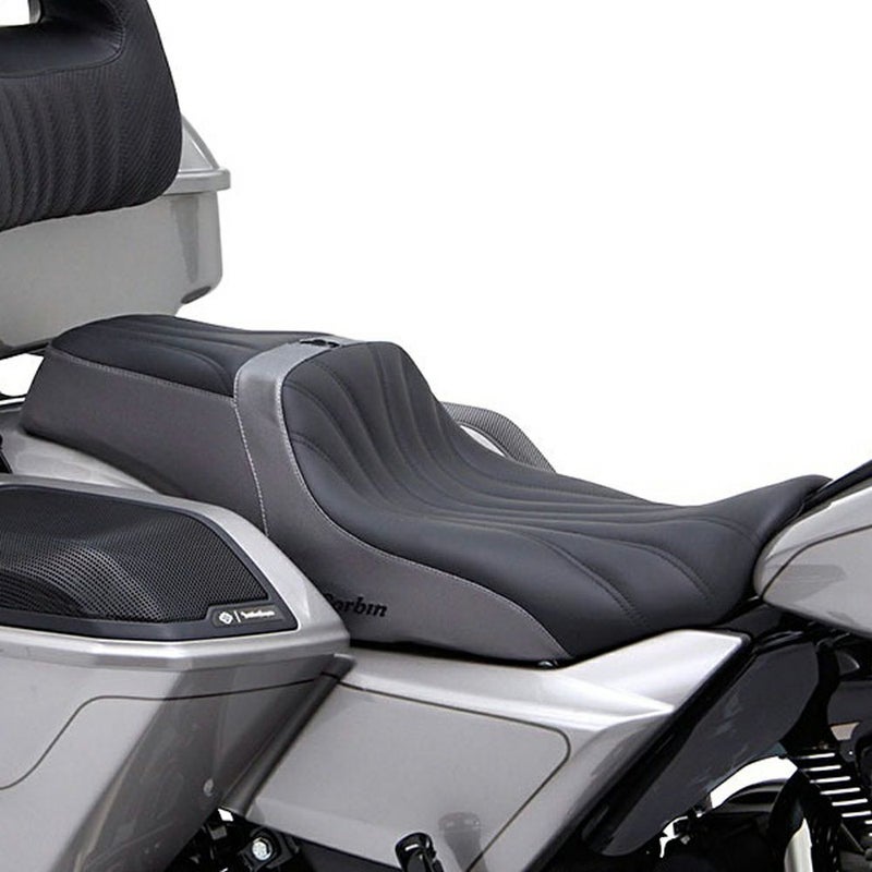 2023年以降 CVOロードグライド、CVOストリートグライドおよび2024以降 ロードグライド、ストリートグライド、CVOロードグライドST用 デュアルシートです。 <特長> ●高いライダーバックサポートによるアグレッシブなライディング時のサポート力とタンデム乗車の利便性を両立したデザイン ●コルビンオリジナル高密度シートフォームと頑丈な専用シートベースで体重を常に適度に分散、長時間の乗車でもお尻が痛くなりません ●別売コルビン専用バックレスト(BR、02-SB 他)を装着すれば、背中・腰へのサポートをより高めることが出来ます ※掲載写真以外の色・柄も価格変更なしでオーダー出来ます。 (詳細はお問い合わせください) ※写真のバックレストは別売です。 ※写真はヒート機能付きのもの(左サイドにスイッチのあるもの)を含みます(参考写真)