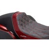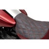 ロードキング、ロードキングスペシャル用 人気の ザ・ウォール サドルです。 BMCモーターサイクルとコルビンのコラボレーションによって開発されたシート。 高く垂直に立ち上がるバックサポートデザインが特徴です。 このバックサポートによって、よりアグレッシブなライディングが可能になります。 もともとはウィリーなどスタント用のデザインですが、強烈な加速の際にもライダーをしっかりとホールドしてくれます。 高密度のコルビン独自のシートフォームは適度な硬さがあり、長時間乗っても荷重ポイントが変わりません。 コルビンのために独自に開発された、ハイブリッド素材製のシートベースが、シートフォームの型崩れを防止し、長時間乗っても体へかかる荷重が変化しません。 ※掲載写真以外の色・素材もオーダー可能です。(詳細はお問い合わせください)
