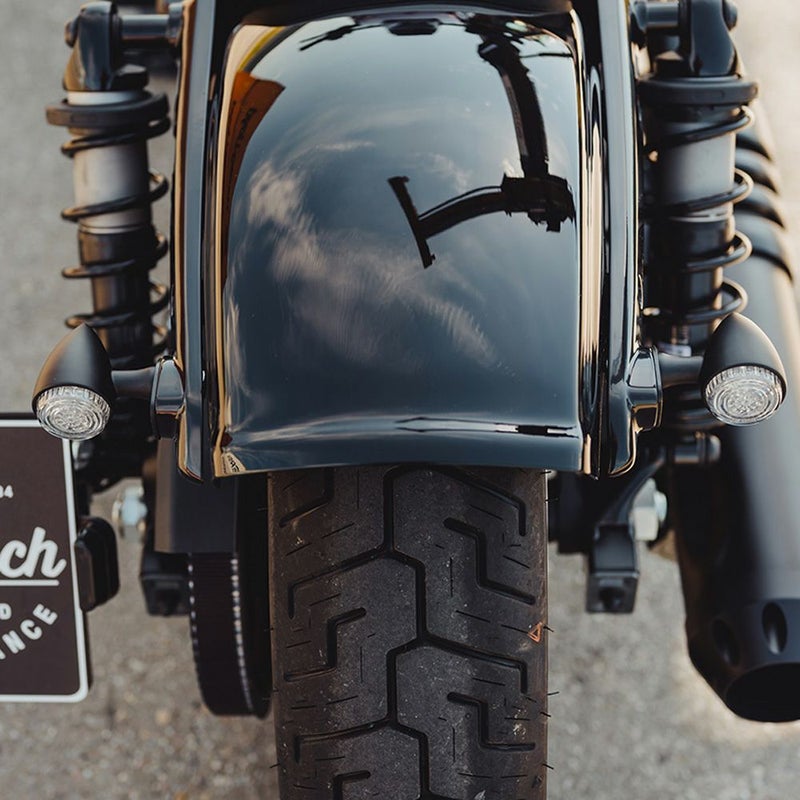 ハーレー ナイトスター RH975用 ショートリアフェンダーです。 ナイトスターのリア周りをすっきりとしたルックスにドレスアップします。 丈夫なABS樹脂製。 CNCマシンによる削り出し加工品。精度の高い仕上がりです。 ノーマルフェンダーと同じマウント箇所にボルトオンで装着可能です。 カラーはグロスブラック(塗装済み)。 ※ナンバーおよびテールライトは移設が必要です。
