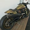 ハーレー スポーツスターSのリアアクスルカバーセットです。 リアアクスル周辺のシルバー部分をブラックアウトし、スイングアーム全体を引き締めます。 リアアクスルの上に被せて、付属のイモネジで固定します。 アルミニウム製。5軸CNCマシンによる削り出し加工品です。 マットブラックパウダーコートフィニッシュ。 左右ペア