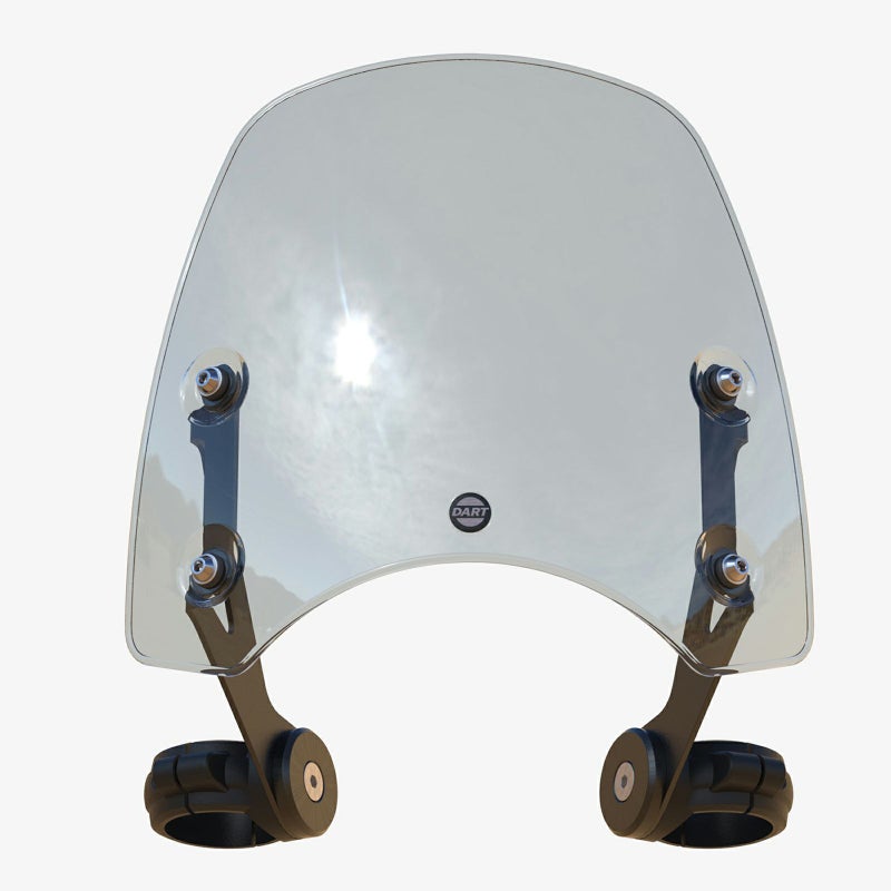 ダイナ スーパーグライド用 フライスクリーンです。 フロントフォークに装着します。ハンドルマウント式でないため、ハンドル形状に左右されません。 49mm径フロントフォーク車用。 形状は先端に向けてテーパーする、すっきりとしたデザイン。 材質は丈夫な厚さ4mmのポリカーボネイト。 衝撃に強い自動車部品グレード。 傷防止のハードコート処理済みです。 ブラケットはスチール製。レーザーカットとCNCマシン曲げで製作されています。フィニッシュはテクスチャーブラック。 スクリーンとブラケットの接合部はエチレンプロピレンゴム製の防振グロメットを使用しています。 フォーククランプはアルミニウム製、腐食に強いブラックカラーのアルマイト仕上げです。