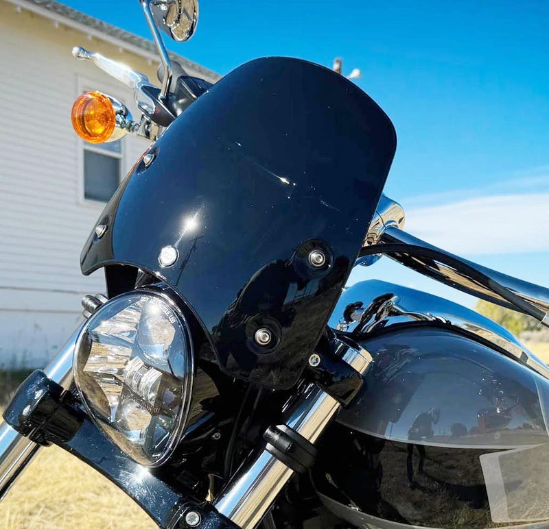 ソフテイル ブレイクアウト用 フライスクリーンです。 フロントフォークに装着します。ハンドルマウント式でないため、ハンドル形状に左右されません。 49mm径の正立フロントフォーク車用。 形状は先端に向けてテーパーする、すっきりとしたデザイン。 材質は丈夫な厚さ4mmのポリカーボネイト。 衝撃に強い自動車部品グレード。 傷防止のハードコート処理済みです。 ブラケットはスチール製。レーザーカットとCNCマシン曲げで製作されています。フィニッシュはテクスチャーブラック。 スクリーンとブラケットの接合部はエチレンプロピレンゴム製の防振グロメットを使用しています。 フォーククランプはグラスファイバー繊維入りの強化プラスチック素材。柔軟性に富んだエラストマー樹脂製のコレットと合わせ、しっかりとクランプ出来ます。