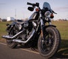 スポーツスター フォーティ―エイト/スペシャル用 フライスクリーンです。 フロントフォークに装着します。ハンドルマウント式でないため、ハンドル形状に左右されません。 2016以降の49mm径フロントフォーク車用。 形状は先端に向けてテーパーする、すっきりとしたデザイン。 材質は丈夫な厚さ4mmのポリカーボネイト。 衝撃に強い自動車部品グレード。 傷防止のハードコート処理済みです。 ブラケットはスチール製。レーザーカットとCNCマシン曲げで製作されています。フィニッシュはテクスチャーブラック。 スクリーンとブラケットの接合部はエチレンプロピレンゴム製の防振グロメットを使用しています。 フォーククランプはアルミニウム製、腐食に強いブラックカラーのアルマイト仕上げです。 ※装着写真は参考用に別車種の物です。