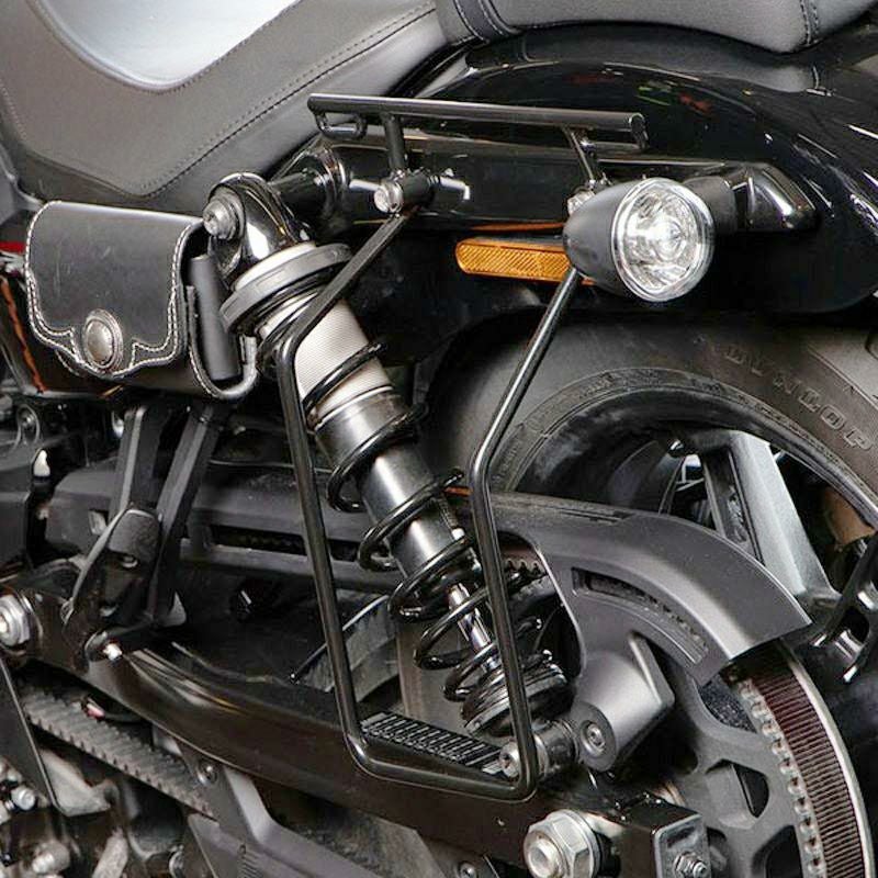 ハーレー ナイトスター RH975用 サドルバッグサポートです。 リアフェンダーストラットと共締めするだけで取り付けできます。 縦方向の長さが十分にあり、サドルバッグ装着用のストラップを通すリング付ですので、デグナー製サドルバッグ等、大型サドルバッグを装着する際にも安心です。 取付けに必要なボルトが付属します。 ※純正ドッキングハードウェアとの併用不可 左側用 単品販売
