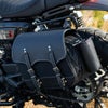 荷物の量に応じて容量を変えることができる左用サドルバッグです。 サイドのジッパーの開閉で、13L~17Lへ容量を増やせます。 クラシカルなスタイルのサドルバッグですが、ハーレー スポーツスターS 等 マフラーとの関係で車体左側にしかバッグを装着出来ない車両でも積載量を増やせるので、安心かつ便利です。 素材はナイロンおよび合成皮革。 本革製に較べて手入れが非常に簡単で気軽に使用出来、かつ丈夫です。 リッドはダブルストラップ仕様。バックル付きで荷物の量に応じてストラップの長さを調整できます。ストラップ裏側にはクイックリリース式バックルも付いており、ワンタッチで開閉できます。 開口部はダブルファスナー仕様で大きく開くので便利です。 ボトルホルダーx1個が付属します。バッグの左右両側の回転式ベースにワンタッチで着脱出来ます。 背面には車体への固定用ストラップ2本が付属します。 背面には更に車体との擦れからバッグを守るガード付。面ファスナー式で位置調整が可能です。 専用レインカバーが付属します。