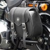 色々な車体に合わせやすい、本革製サドルバッグです。 <特長> ●天然タンニンなめし牛革を使用しており、使い込むほどに本革ならではの風合いが増します ●ビンテージテイストの、質感の高いコンチョ付き ●バックルは渋みのあるアンティークシルバーカラー ●ストラップ裏側にクイックリリース金具を装備。ワンタッチで開閉できます ●ヘルメットホルダーを廃したシンプルな造りです ●背面は樹脂製プレート仕様ですので、型崩れしません ●バッグ内部の背面ポケットは、書類などの薄手のものを収納するのに便利です ●取付用ストラップ2本と、バタつき防止革紐で、サドルバッグガードに取り付けます ※サドルバッグガードは付属しません ●レインカバーが付属します