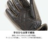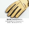 スタンダードタイプのレザーグローブ。 ●スマートなシルエットのレザーグローブ。 ●手の甲と指にステッチを入れる事で、指が長く細く見えるデザインになっています。 ●手のひら側には摩耗しやすい部分に革をあてて補強してあり、クッションを入れてライディング時の疲労も軽減します。 ●手首部分は面ファスナー式で、着脱やサイズ調整が簡単にできます。 ●親指と人差し指にはタッチスクリーン対応素材を使用しており、スマホ等の操作が可能です。