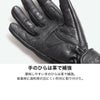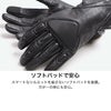 ソフトパッド付きのレザーグローブ。 ●スマートなシルエットを崩さないソフトパッドを装備。 ●人差し指、中指の関節部分にシャーリングを施し、指の曲げ伸ばしの抵抗を軽減しています。 ●手のひら側には摩耗しやすい部分に革をあてて補強してあり、耐久性に優れています。 ●手首部分は面ファスナー式で、着脱やサイズ調整が簡単にできます。 ●親指と人差し指にはタッチスクリーン対応素材を使用しており、スマホ等の操作が可能です。