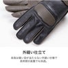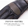ソフトプロテクター付きのレザーグローブ。 ●手の甲部分には、握った時に自然とフィットするソフトプロテクターを装備。 ●各指は縫い目が当たらない外縫い仕上げなので、長時間の装着でも快適です。 ●手のひら側には摩耗しやすい部分に革をあてて補強してあり、耐久性に優れています。 ●手首部分は面ファスナー式で、着脱やサイズ調整が簡単にできます。 ●親指と人差し指にはタッチスクリーン対応素材を使用しており、スマホ等の操作が可能です。