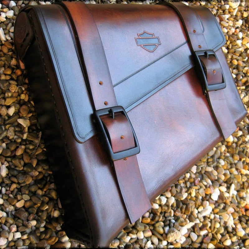 ハンドメイドの本革サドルバッグです。 スペインのクラフトマンの手作業で一品一品製作された、味わい深い製品です。 ブラウンのレザー。 リッドに入ったバーアンドシールドのロゴマークがデザインアクセント。 昔ながらの堅苦しくないラフな雰囲気がボバーやチョッパーにも似合います。 バッグ本体は本革と、スチールのバックプレートの組み合わせです。 車両への取り付けは付属のタイラップ等でフレームやフェンダーレールへ固定します。 ※裏面の写真は別製品です。(参考写真) 正面向かって右側の縦が長い仕様(モデルA)と、左側の縦が長い仕様(モデルB)があります。装着車両、装着場所に合わせてお選びください。 このバッグは正面向かって左側縦が長い仕様(モデルB)です。 ※モデルA/B比較写真は別の製品です。(参考写真)