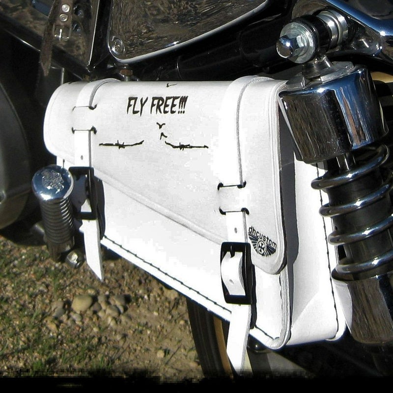 dhカスタム FLY FREE ミニサドルバッグ (ホワイト) Model A 【スポーツスター、ダイナ、ソフテイル】