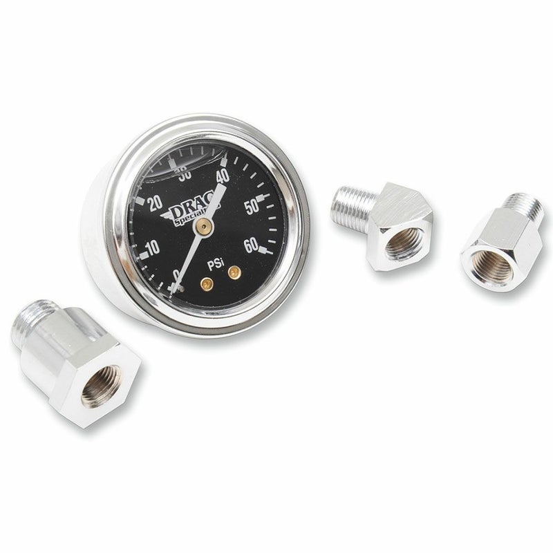 耐久性に優れた60psi油圧計。 ステンレススチールのケースに耐候性の密閉レンズを備えています。 フィッティングが付属するので、クランクケースにボルトオンで取り付け可能です。 エンジン、オイルの状態確認の為に油圧計は必要なパーツの一つです。 特にアイドリングを下げている車両には必須です。