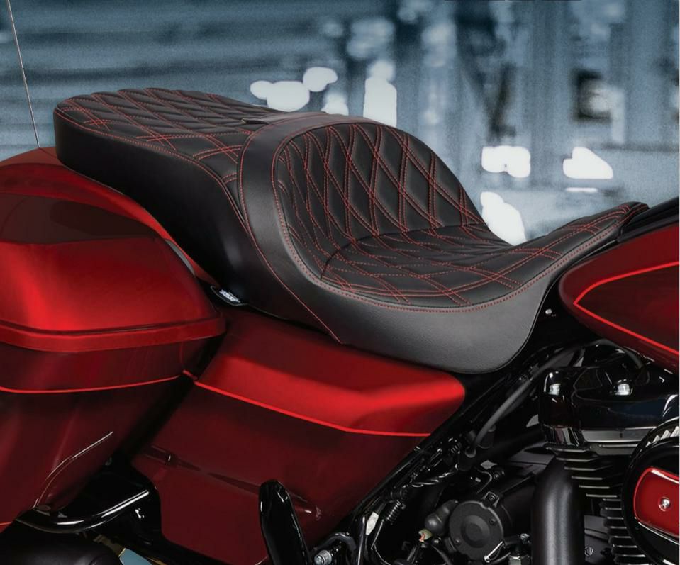Drag Specialties フリーダム ツーリングシート ダブルダイアモンドレッドステッチ 2009以降ツーリング