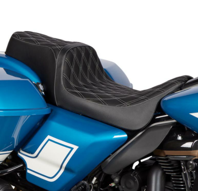 ツーリング用 パフォーマンスバガールック・ソロシートです。 <特長> ●細身のシェイプ。更に絞りこんだフロントで足つき性を向上 ●テールはツーアップシートの趣を残しつつ、ミニマルな細身のデザイン ●自動車部品グレードの高品質ビニールレザーを使用。座面にはアグレッシブなダブルダイアモンドステッチ入り ●モールド成形のポリウレタンシートフォームで快適な座り心地 ●シートパンは厚さ3/16インチ(約4.8mm)の丈夫なABS樹脂製。車体に接する面は傷防止用のカーペット素材カバーとラバーバンパー付