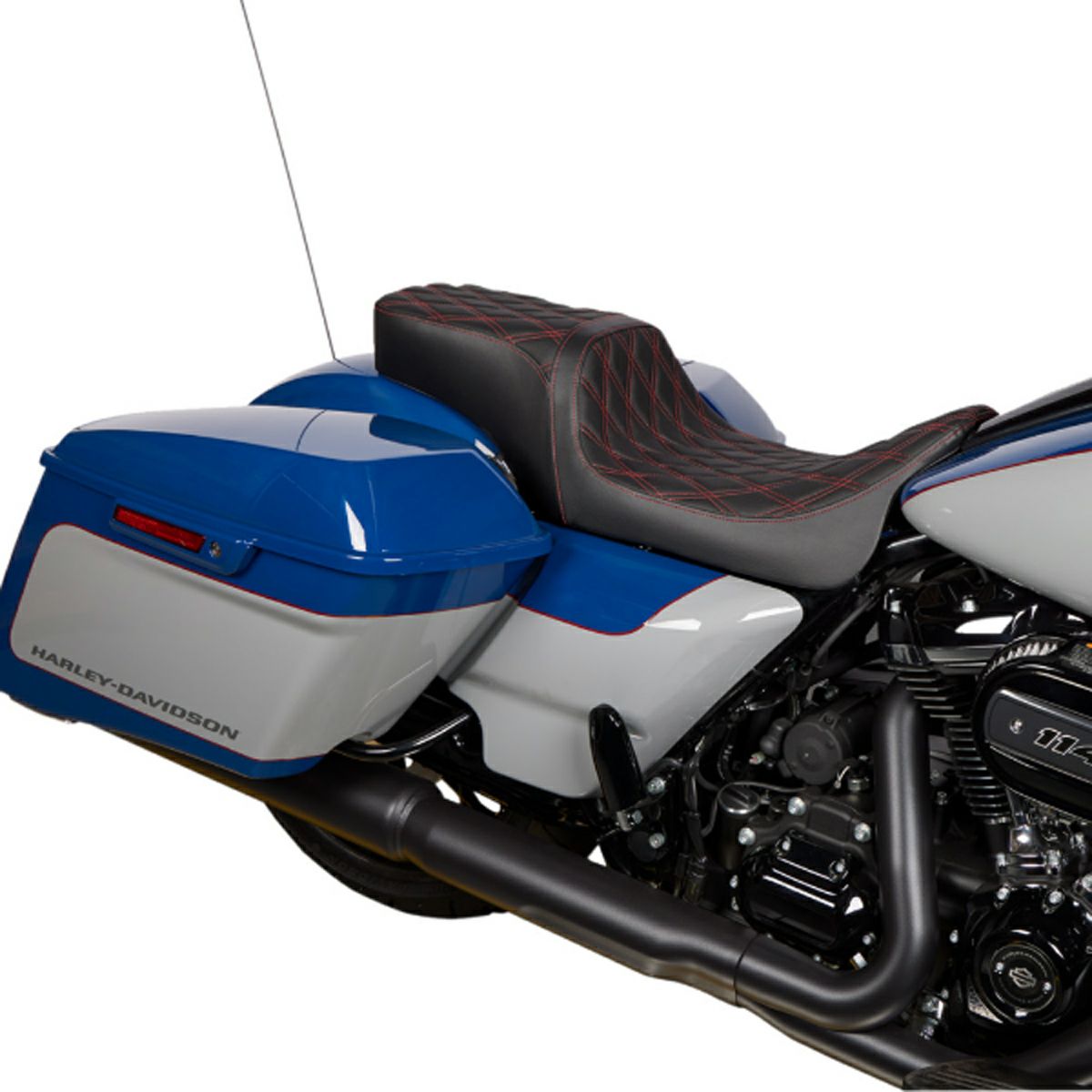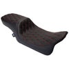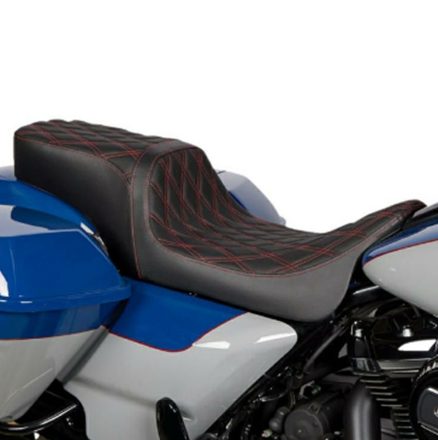 ツーリング用 パフォーマンスバガールック・ツーアップシートです。 <特長> ●細身のシェイプ。更に絞りこんだフロントで足つき性を向上 ●自動車部品グレードの高品質ビニールレザーを使用 ●座面はアグレッシブなダブルダイアモンドステッチ ●モールド成形のポリウレタンシートフォームで快適な座り心地 ●シートパンは厚さ3/16インチ(約4.8mm)の丈夫なABS樹脂製。車体に接する面は傷防止用のカーペット素材カバーとラバーバンパー付