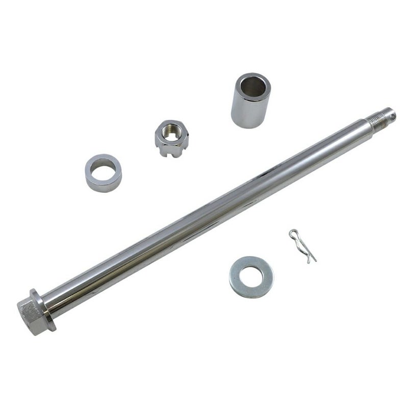 ハーレー 2000~2001 ツーリング用 リアアクスルキットです。 殺風景なリアアクスルとその周辺パーツをクロームに変えることで、ドレスアップ出来ます。 リアアクスルシャフト、アクスルナット、スペーサー、ワッシャー、スプリングクリップが付属します。