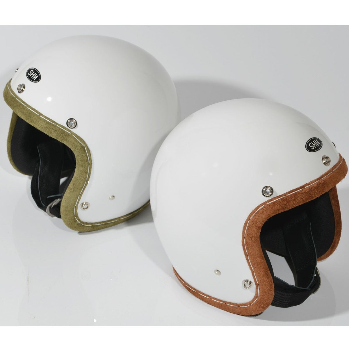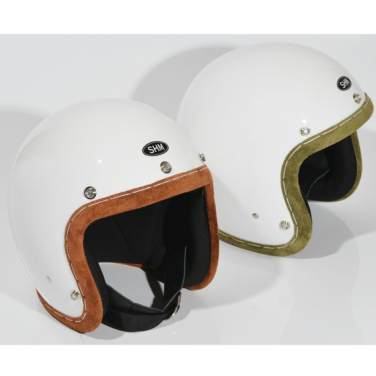 SHM HAND STITCH ジェットヘルメット Lot-112 ホワイト/アイビーグリーントリム