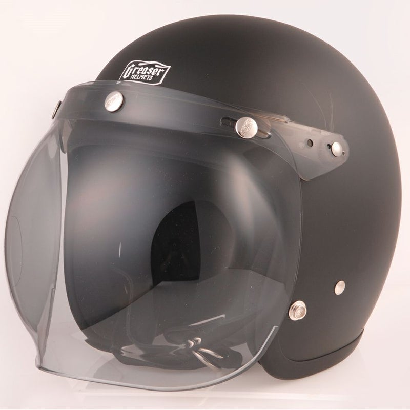 開閉式のバブルシールドです。 フリップアップベース一体型の為、別途シールドコンバーター等を ご用意せずに使用可能です。 取り付け部分はアジャスター機能付き。 3スナップ式シールドが装着できるものであればほとんどのヘルメットに装着可能です。 素材は傷が付きにくく丈夫な事で知られるポリカーボネートを使用しておりますので、高い耐久性があります。 また、V380加工により、日差しが強い日でも安心してご利用いただけます。 隙間風や雨の入り込みを防ぐプロテクションラバーと ヘルメットの傷を防ぐクッションスペーサーが付属しております。 シールドスナップ部分にはDINの刻印入り。 ※ヘルメットは付属しておりません。 ※他社製ヘルメットへ装着の場合、仕様によっては装着ができない場合もございます。 ※フリップアップベースとシールドは分解できません。