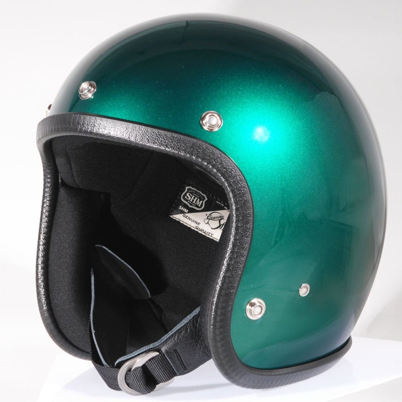 SHMヘルメットから人気のあるキャンディーカラーのヘルメット。 日本人の頭の形に合う帽体を保ちながら、内装の改良により深く被れるように進化しています。 製造は、塗装から内装の組み立て、仕上げまで、国内の熟練した職人による手作業で行われています。 このヘルメットでは、高品質な塗料が使用され、調色や塗装が行われています。 従来の塗料では、再現できないカラーリングが実現しました。 多くの工程を経て塗装されたキャンディーカラーは、見る角度によってさまざまな表情を見せます。 旧車や現行車との相性が抜群であり、差し色などにもおすすめです。 特にブラックアウト化された車両との組み合わせでは、キャンディーカラーが一層引き立てられます。 ヘルメットのサイズ感は小さいですが、SG規格(全排気量)をクリアしており、安全性も確保されています。