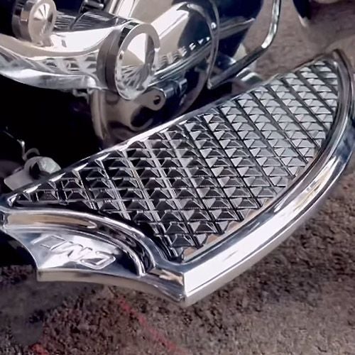 ツーリング、トライク用 ELEV8デザインライダーフロアボードです。 <特長> ●シャープなシルエットがアグレッシブな印象のELEV8デザイン。同デザインのハンドルバーやエンジンガードとの相性も抜群です ●素材は高品質なビレットアルミニウム製。CNCマシンによる削り出し加工で製作されています ●ゴージャスなルックスのダイアモンドパターンのアルミ製インサート付です ●左右ペア ※2024 CVOロードグライドSTは不可