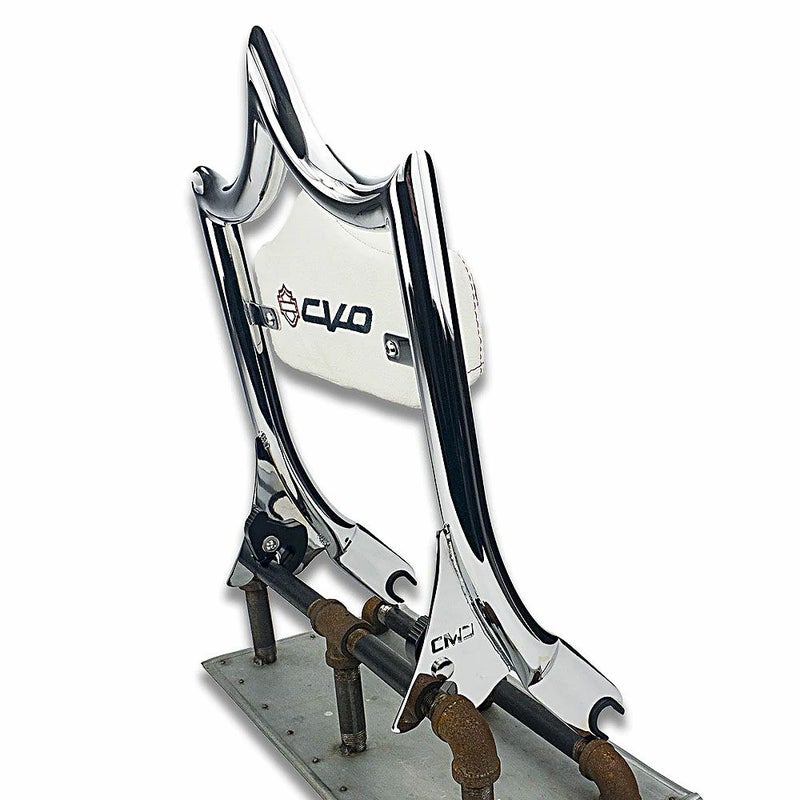 独特でインパクトのある形状のシーシーバー。 攻撃的な形状はかなりインパクトがあり目立ちます。 背面にはホワイトベースの生地にCVOのロゴが入り、表面にはレッドダブルダイアモンドステッチの入ったパッドが付属します。 1.25インチ径の太いパイプを手作業で精密に曲げ加工され製作されています。 デタッチャブル式ですので、ドッキングポイントを装着している車両であれば、手軽に脱着できます。 ドッキングポイントは、別売です。