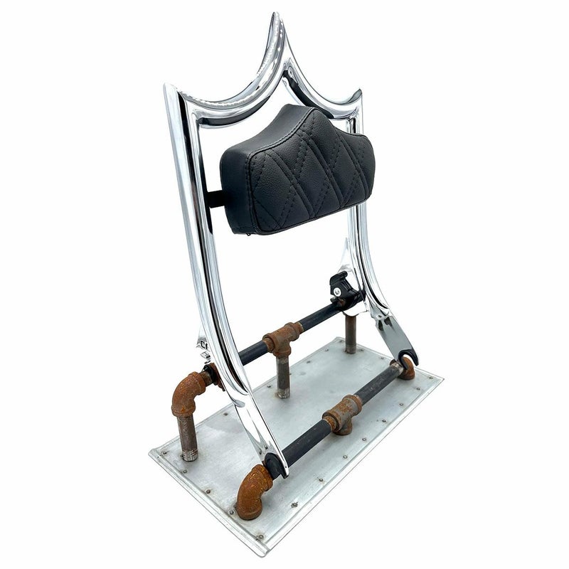 エル・レイ デタッチャブル バックレスト 16インチ クローム ダイヤモンド/ブラックステッチ CMC