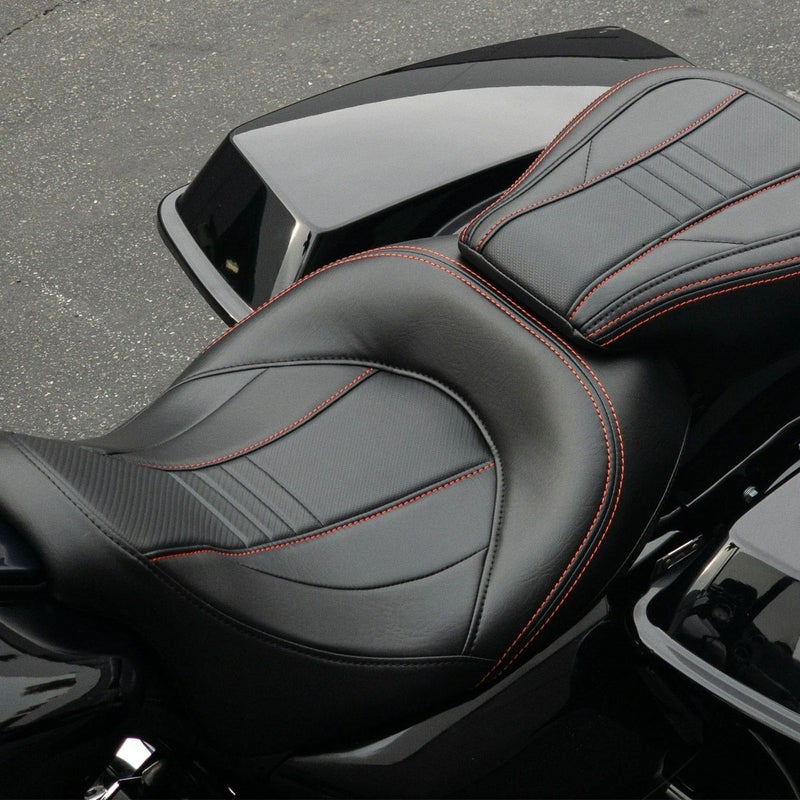 ハーレー ツーリング カーボン ソロ&パッセンジャーシートSET(レッドステッチ) CMC
