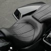 ハーレー 2008以降 ツーリング用 フロントソロシートとパッセンジャーピリオンのセットです。 ノーマルシートとほぼ同じライダーポジションでありながら、2インチ(約5cm)座面が低くなり、足つき性が良くなります。 デザインはセンターにカーボンファイバー柄のパネルを配したインパクトのあるデザイン。 ホワイトのステッチカラーがアクセント。 パッセンジャーピリオンも同デザインのセットです。 表皮は船舶用グレードの耐UV仕様高品質ビニールレザー。 シートパンは軽量かつ頑丈なABS樹脂製。 ソロシート用ナール付シートスクリューが付属します。 パッセンジャーピリオンは、ノーマルのシートスクリューを流用して装着します。 ※同デザインのパッド付EL REYバックレスト(09GBREV19112X-CFWH、09SCREV19112X-CFWH)と組み合わせることにより、更に統一デザインでドレスアップ出来ます。