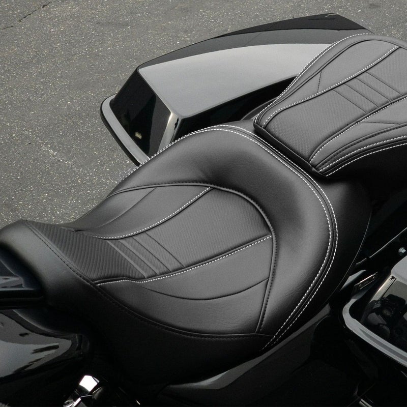 ハーレー ツーリング カーボン ソロ&パッセンジャーシートSET(ホワイトステッチ) CMC