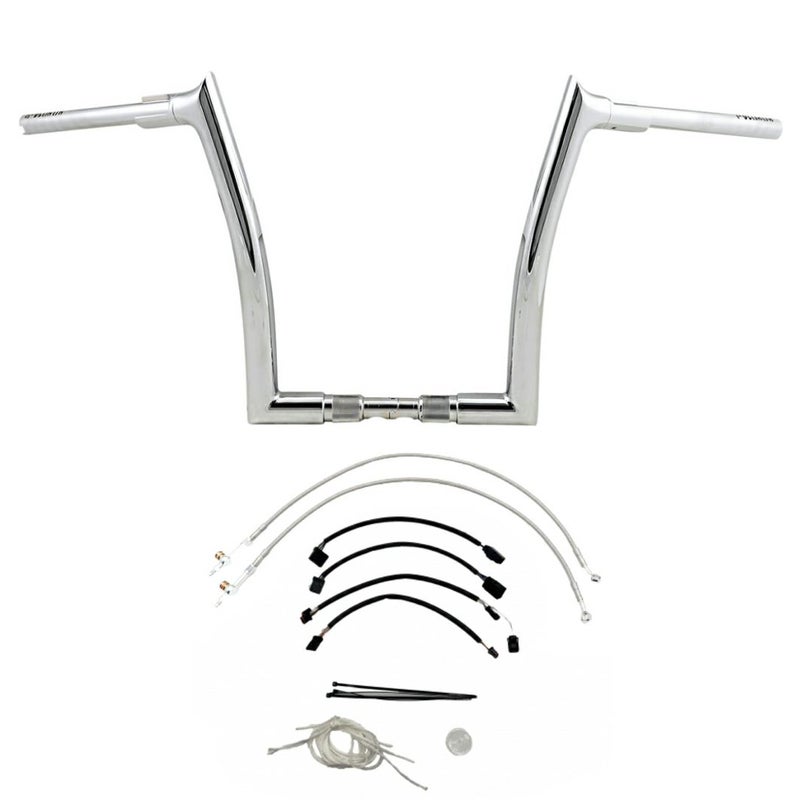 【SALE】0601-5456:Fat Baggers 1.5インチ・ポインテッドトップ ハンドルバー ケーブル付キット 14インチ クローム