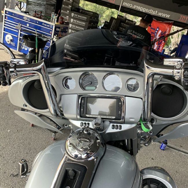 2021以降のハーレー エレクトラグライド、ストリートグライド、トライグライド用 エイプハンドルバーとエクステンションケーブルのキットです。 ハンドルバーは1.5インチ径の極太サイズ。トップ部分が尖ったアグレッシブなデザインです。 ノーマルハンドコントロール用のアダプター付ですので、ハンドコントロールが極太バーに隙間なくフィットします。 Fat Baggers(ファットバガー)特許の2ピース構造。配線を通す作業が通常のハンドルよりも格段に容易です。 トップ部分内部は溶接ではなく、ビレットパーツのラウンド形状のため、配線が引っかからずスムースに通ります。 更にハンドル装着に必要な、クラッチケーブルとブレーキラインのエクステンション部分とスイッチ配線エクステンションが付属しますので、コストパフォーマンス良くハンドル交換を行えます。 6インチクラッチケーブルエクステンション、クラッチケーブルチューブ、ブレーキラインエクステンション、ハンドル配線エクステンション、中通し用紐、潤滑剤、タイラップが付属します。 ※車両装着写真は油圧クラッチ車用のものです(参考写真)