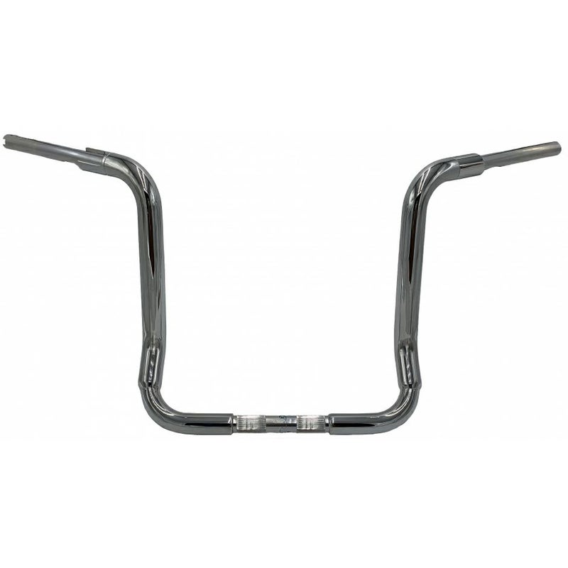 ハーレー FLH ツーリング、トライグライド用の1-1/2インチ径、エイプハンドルバーです。 ファットバガー特許取得のEZインストール構造。センターで2ピースに分割でき、トップ部分の内部もスムースで配線中通しが楽に行えます。 ※純正ヒートグリップ装着可 厚さ0.12インチ(約3mm)の頑丈なスチールパイプ製。 メイン部分は迫力の1.5インチ径。 高さは16インチ(約41cm)。 フロントブレーキマスターシリンダー用の切り欠き付カラーにより、装着時にハンドコントロール周りのルックスがタイトに決まります。 クラッチケーブル車用。(左カラーにマスターシリンダー用の切り欠き無し) ハンドル右端に電子制御スロットル用切り欠き付です。