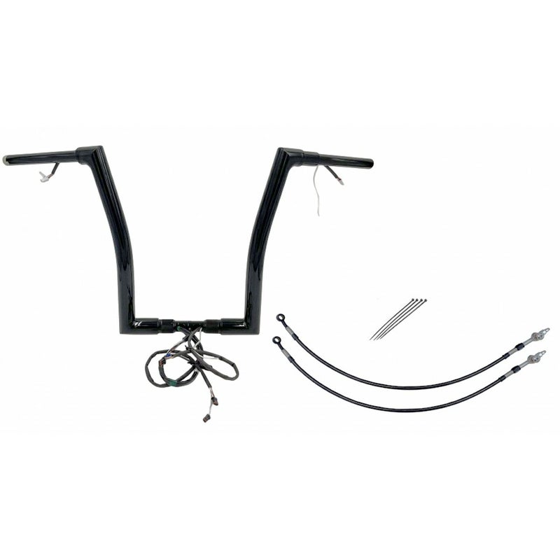 2015 ロードグライド 1.5インチ フラットトップ ハンドルバー プラグアンドプレイキット 16インチ グロスブラック Fat Baggers