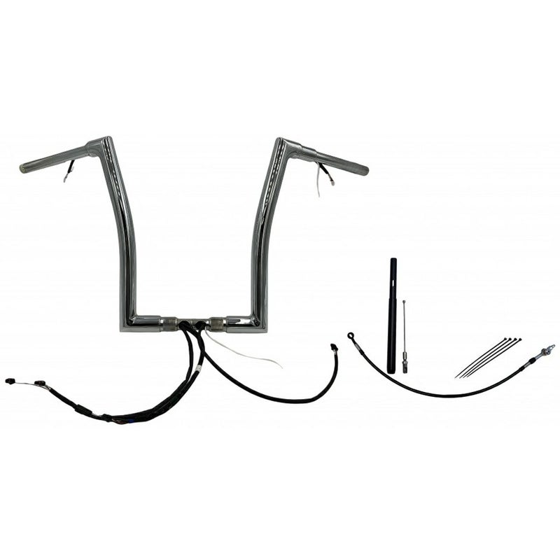 ロードグライド用 配線中通し済みハンドルバーキットです。 スロットルセンサー配線、Can-Busスイッチ配線が中通しされており、面倒な配線中通し作業の手間が省けます。 ハンドルバーはFat Baggers(ファットバガー)特許のツーピース構造。 コーナー部分が溶接の無いビレットスチール一体構造で中がスムースなため、配線が引っかかりません。 迫力の1.5インチ径。肉厚0.095インチ(約2.4mm)の頑丈なスチールパイプ製。ノーマルのハンドコントロール、リザーバータンクが綺麗に収まるカラーが付属します。 2021以降のケーブルクラッチ車用。 クラッチケーブル(延長部分)およびブレーキホース(アッパー部分)も付属しますので、このキットがあればハンドル交換が比較的簡単に完成します。 ※純正ヒートグリップも対応可能ですが、ヒートグリップ用延長配線(2120-0917)は別売です。