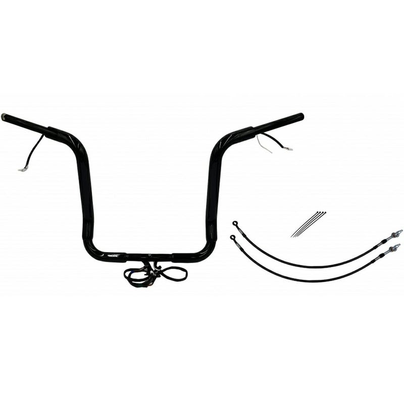Fat Baggers 2014~2015 1.5インチ ラウンドトップ ハンドルバー 16インチ グロスブラック プラグアンドプレイキット