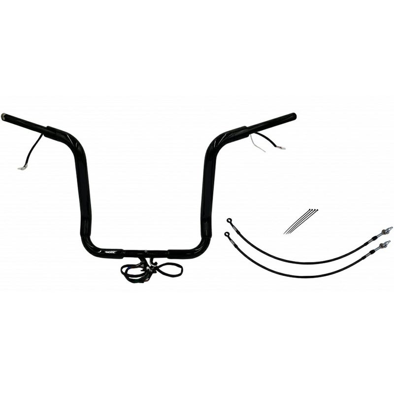 エレクトラグライド、ストリートグライド、トライグライド用 配線中通し済みハンドルバーキットです。 2016以降用スロットルセンサー配線、Can-Busスイッチ配線が中通しされており、面倒な配線中通し作業の手間が省けます。 ハンドルバーはFat Baggers(ファットバガー)特許のツーピース構造。 コーナー部分が溶接の無いビレットスチール一体構造で中がスムースなため、配線が引っかかりません。 迫力の1.5インチ径。肉厚0.095インチ(約2.4mm)の頑丈なスチールパイプ製。ノーマルのハンドコントロール、リザーバータンクが綺麗に収まるカラーが付属します。 油圧クラッチ車用。 クラッチライン(延長部分)およびブレーキホース(アッパー部分)も付属しますので、このキットがあればハンドル交換が比較的簡単に完成します。 ※純正ヒートグリップも対応可能ですが、ヒートグリップ用延長配線(2120-0917)は別売です。