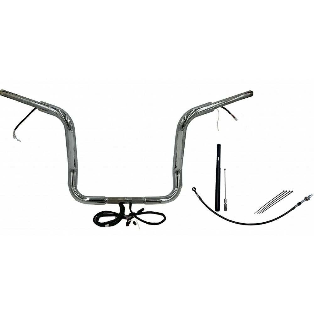 FLHT、FLHX 1.5インチ ラウンドトップ ハンドルバー プラグアンドプレイキット 14インチ クローム Fat Baggers